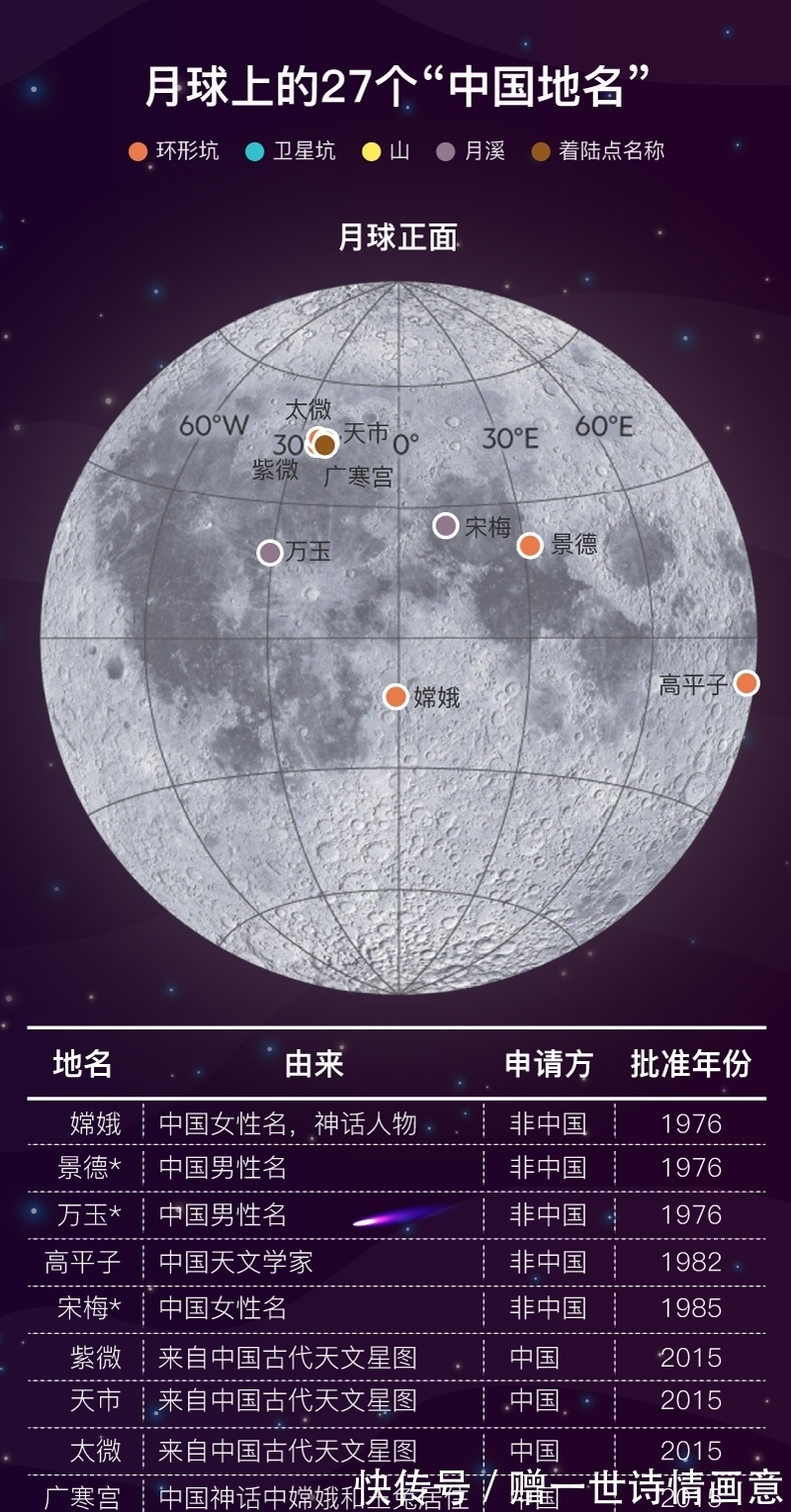 来自古代传说嫦娥奔月到载人登月科学探索,人类对月球的好奇由来已久。月球始于17世纪。今天,月球上已有9,034个地点被命名。